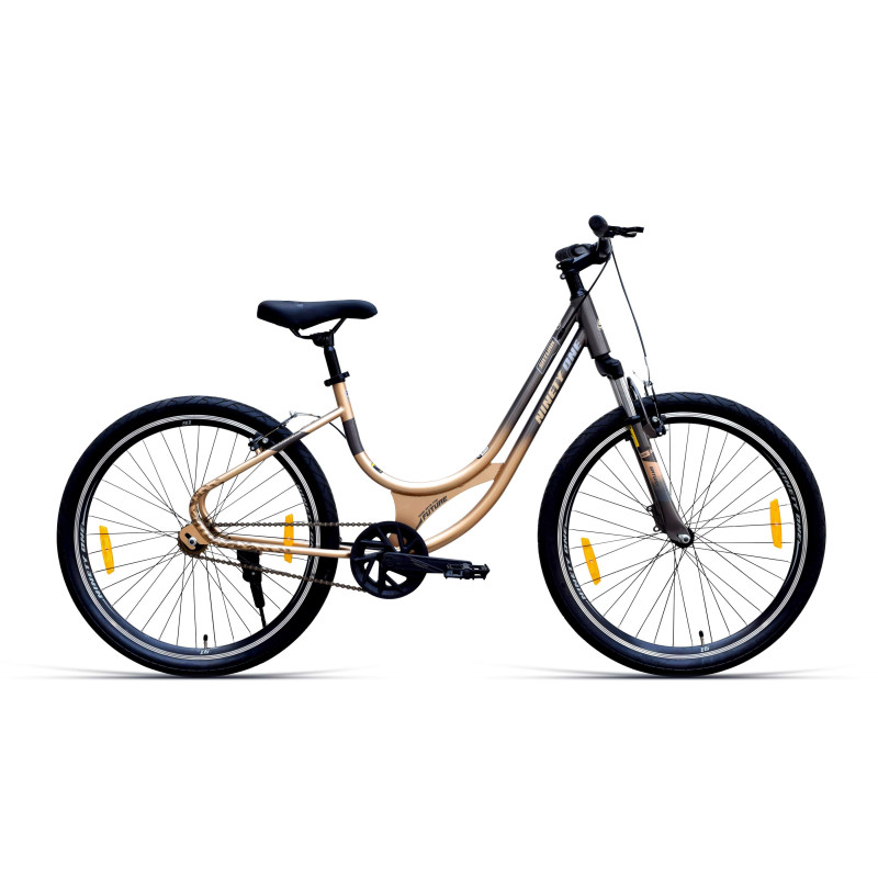 Introducing the Saturn, a new single speed bicycle designed for women. With its unique frame and stunning design, the Saturn offers style, comfort, and durability. Perfect for commuting or leisurely rides, it's the ideal choice for any woman seeking a reliable, stylish ride.