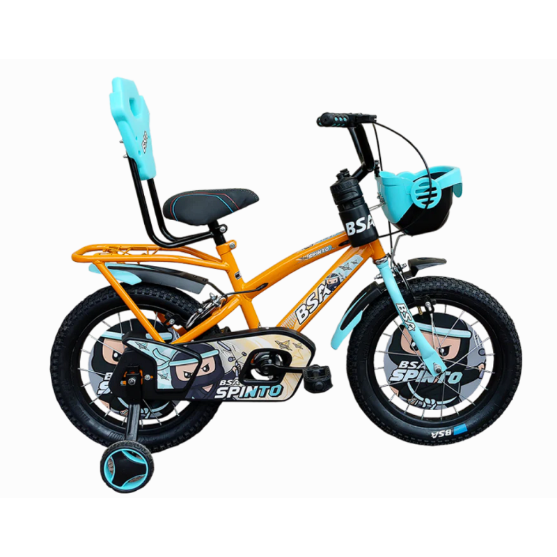 Make every ride a joyride with the BSA Spinto 16T – a fun and vibrant cycle crafted for young explorers aged 4 to 6. With its durable steel frame, 16" wheels, and easy-to-use design, it’s perfect for learning and play. Eye-catching graphics and a comfortable saddle ensure style meets safety on every spin.